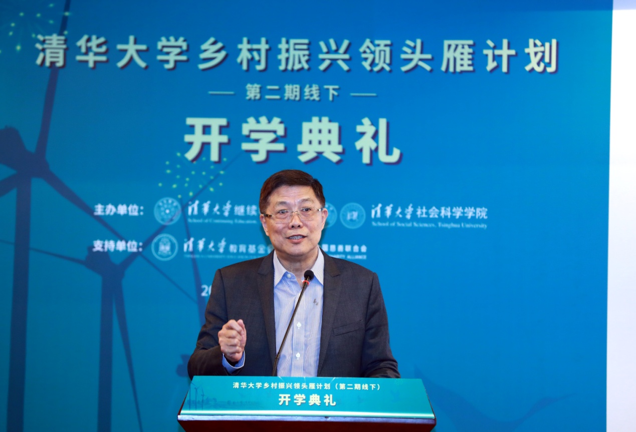 清华新闻网11月19日电 11月16日,在中国慈善联合会、民政部慈善社工司和友成企业家扶贫基金会等机构的指导和支持下,由清华大学继续教育学院、社会科学学院、教育基金会共同组织的“清华大学乡村振兴领头雁计划”二期线下学习开学典礼在清华科技园学研大厦举行。此次培训由清华伟新教育基金捐助支持。中国慈善联合会常务副会长兼秘书长刘福清,国务院参事、中国慈善联合会乡村振兴委员会主任委员、友成企业家扶贫基金会副理事长汤敏,清华大学校务委员会副主任韩景阳出席仪式并致辞。中国网家家平台、SAP大中华区等项目支持单位代表及优秀学员代表参加开学典礼并发言。来自全国各地的100名“新农人”开启了为期5天的线下学习。典礼通过雨课堂同步在线直播。