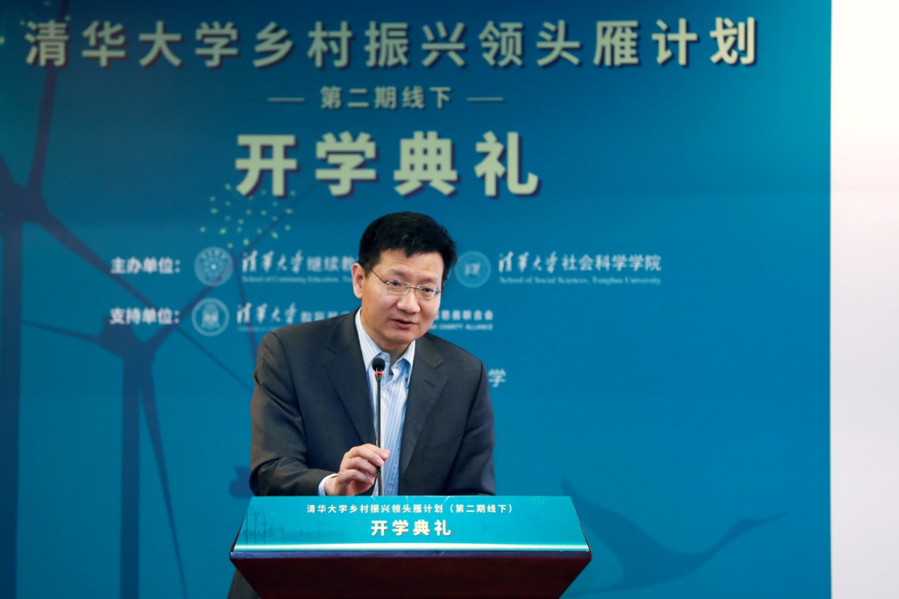 清华大学继续教育学院院长刘震首先代表主办机构对各方的支持表示感谢。他简单介绍了继续教育学院开展教育扶贫,接续推进乡村振兴人才培养的探索和举措。他强调,本次项目的顺利实施实现了社科学院学科建设优势和继续教育学院成人教育专业能力之间的结合,实现了线上和线下学习的融合,也实现了校内和校外资源融合。正是通过这些融合,汇聚各方资源,发挥各方优势,能够将人才振兴作为乡村振兴的真正的着力点和最关键的突破点。最后,他从教育角度提出几点建议,希望不同领域、不同成长背景的学员之间互相交流,取长补短,积极开展朋辈学习。希望学员们树立终身学习的理念,借助各类学习平台,做到人人皆学、时时能学,处处可学。