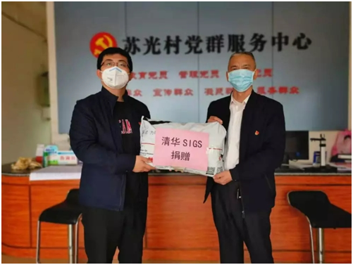 杨昊代表深圳国际研究生院向苏光村委会赠送抗疫物资(2020年2月)