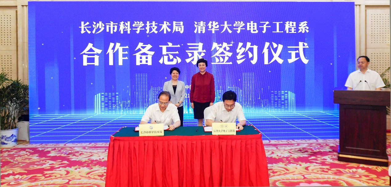 在随后举行的签约活动中,校地签署共建实践基地协议。长沙市科技局与清华大学电子工程系签署合作备忘录,并与清华大学电机系、电子系专家签订“揭榜挂帅”任务书,委托其就“半导体制造装备领域核心电源关键技术与应用”“通航低空空域北斗时空信号安全监测与综合感知平台关键技术”两个选题开展“揭榜挂帅”关键技术攻关。