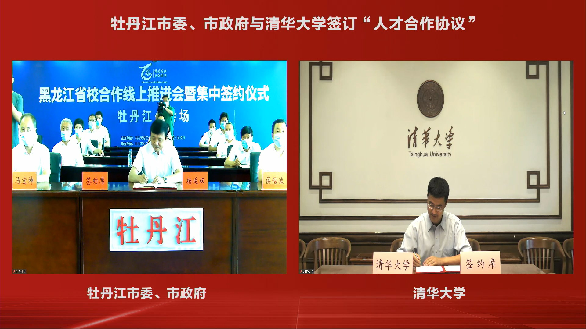 清华大学与牡丹江市线上签约