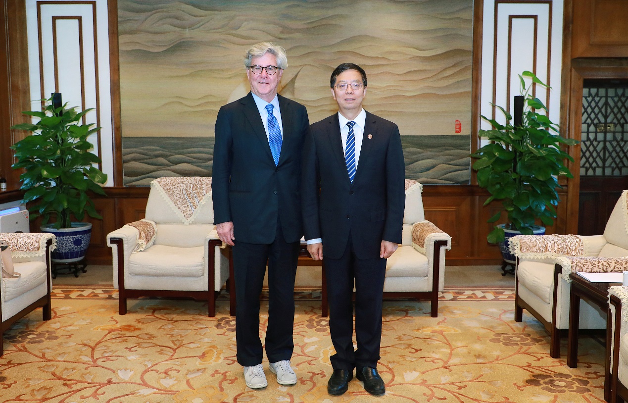 清华新闻网8月25日电(记者 郭莉莉 摄影 赵青松)8月24日上午,校长邱勇在工字厅会见了美国布鲁金斯学会名誉主席约翰·桑顿(John L. Thornton)一行,双方就新冠肺炎疫情对当前中美关系的影响,及未来进一步加强合作进行了交流。副校长、教务长杨斌陪同会见。