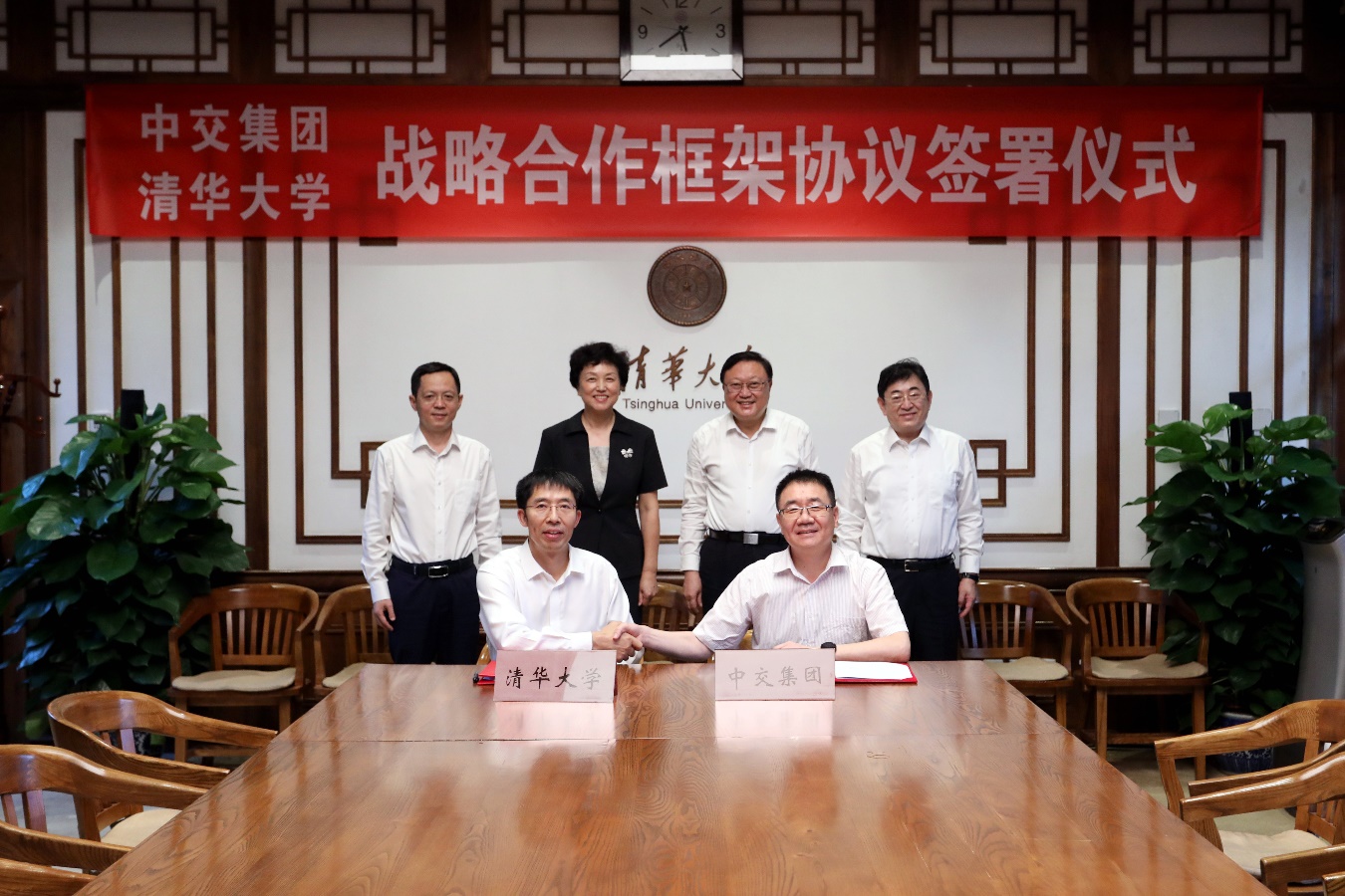 会谈结束后,刘翔、曾嵘分别代表双方签署了《中交集团 清华大学 战略合作框架协议》。