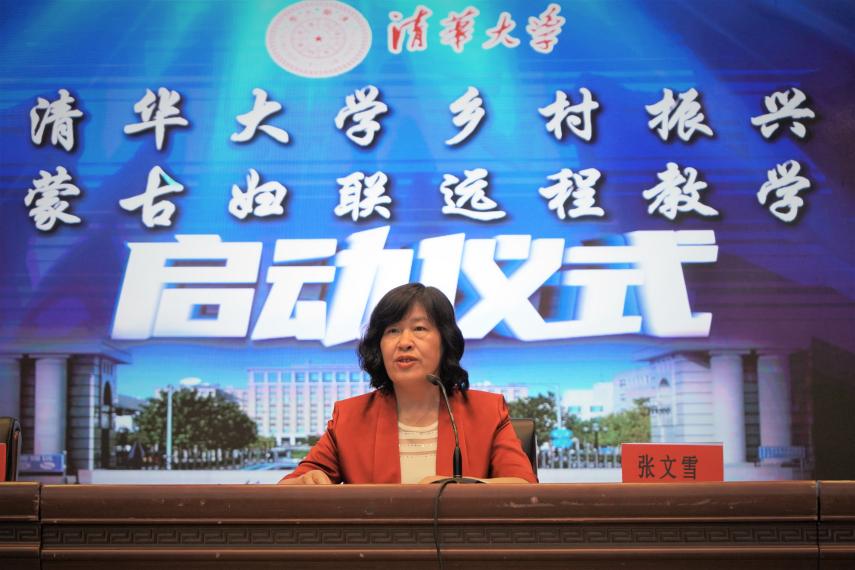 张文雪对远程教学站启动表示祝贺,对自治区妇联、盟委政府、各旗县市的信任和支持表示感谢。她在发言中表示,在庆祝中国共产党成立100周年大会上,习近平总书记代表党和人民庄严宣告,我们实现了第一个百年奋斗目标,在中华大地上全面建成了小康社会,历史性地解决了绝对贫困问题,正在意气风发向着全面建成社会主义现代化强国的第二个百年奋斗目标迈进。清华大学始终坚持扎根中国大地建设一流大学,坚持服务国家,积极履行社会责任,主动参与脱贫攻坚和乡村振兴,尽己所能贡献清华力量。希望通过远程教学站,让清华的教育资源不断走进草原,为内蒙古实施乡村振兴和高质量发展提供支持和服务,用知识托举乡村振兴,托举现代化中国。