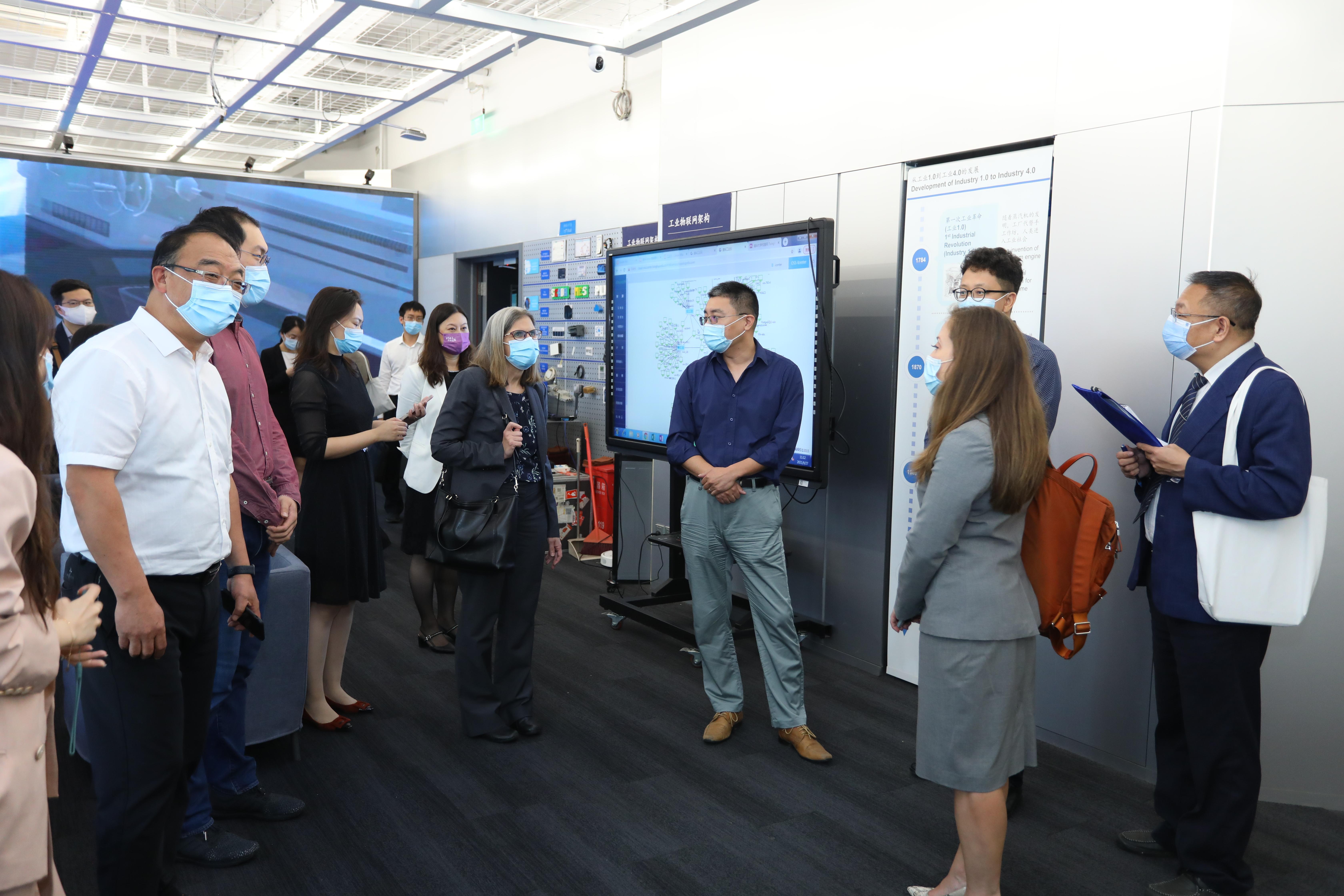 在李兆基科技大楼,代表团先后参观了设计与原型实验室、成型制造实验室、机械制造实验室、智能制造实验室,感受清华工程、科学、艺术、人文等领域的创客资源,以及清华学子亲手实现的创意创新成果。