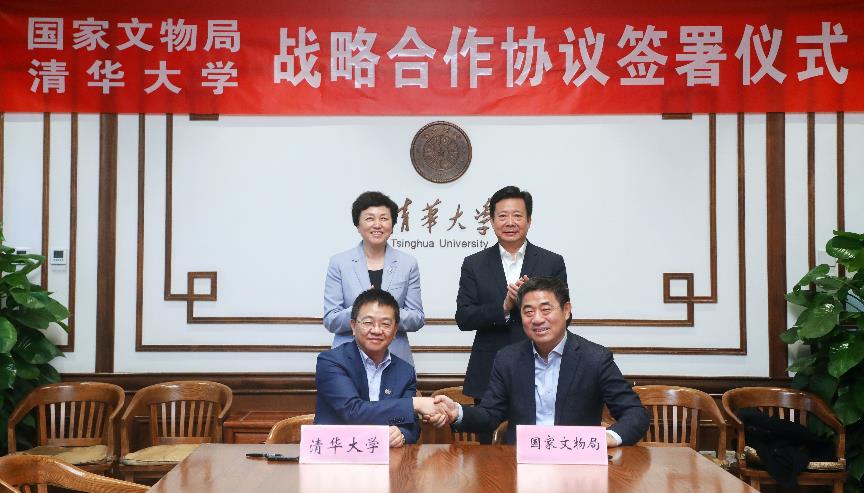 会谈结束后,关强、彭刚分别代表双方签署了《国家文物局清华大学 战略合作协议》,李群、陈旭见证签署。