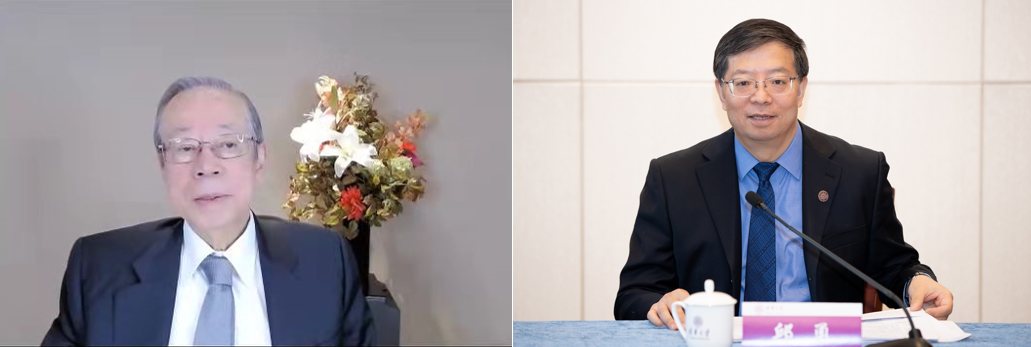 邱勇(右)与福田康夫在线交流