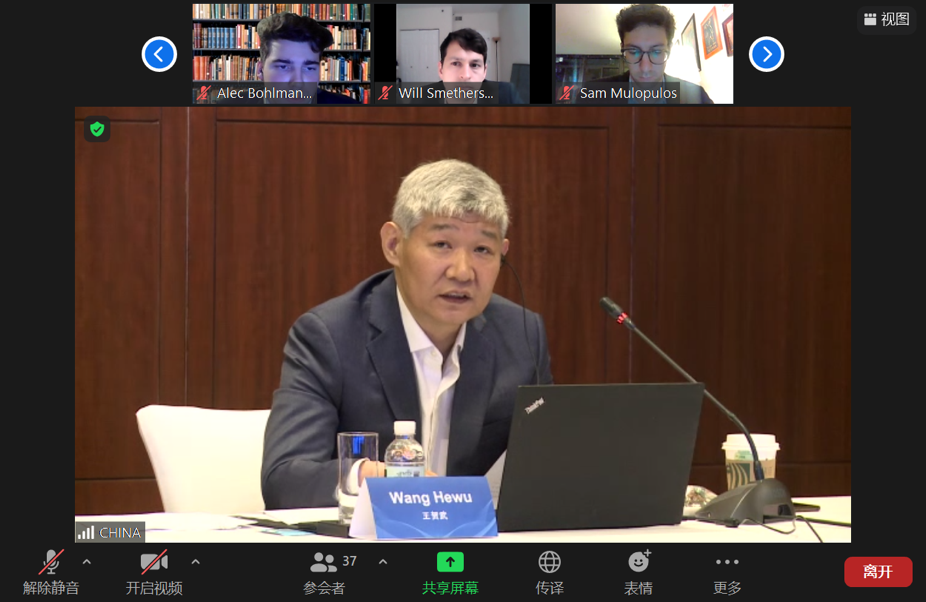 王贺武出席“2021年美国会议员助手虚拟访华会议”