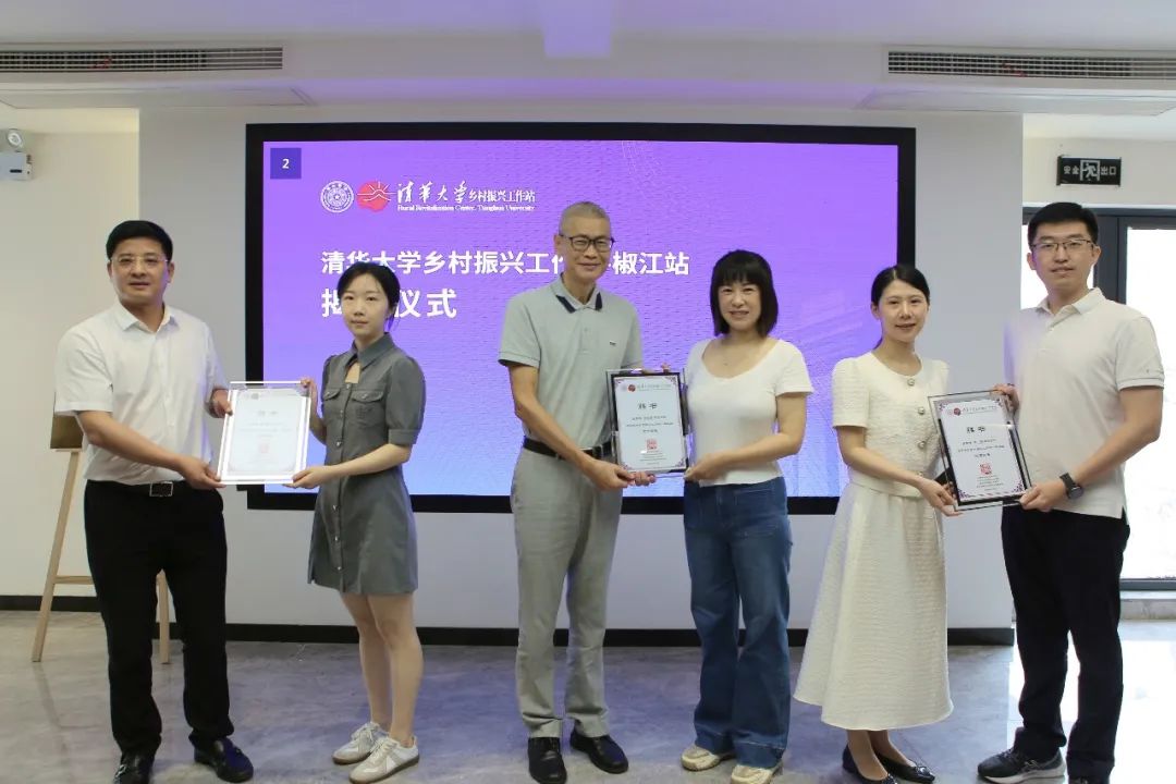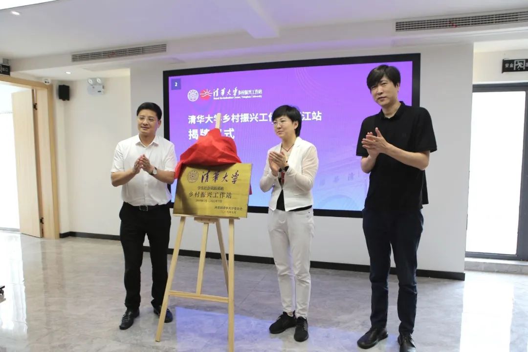 落成仪式上,余潇潇、周斌以及清华大学建筑学院党委副书记、乡村振兴工作站负责人张弘共同为清华大学乡村振兴工作站椒江站揭牌。