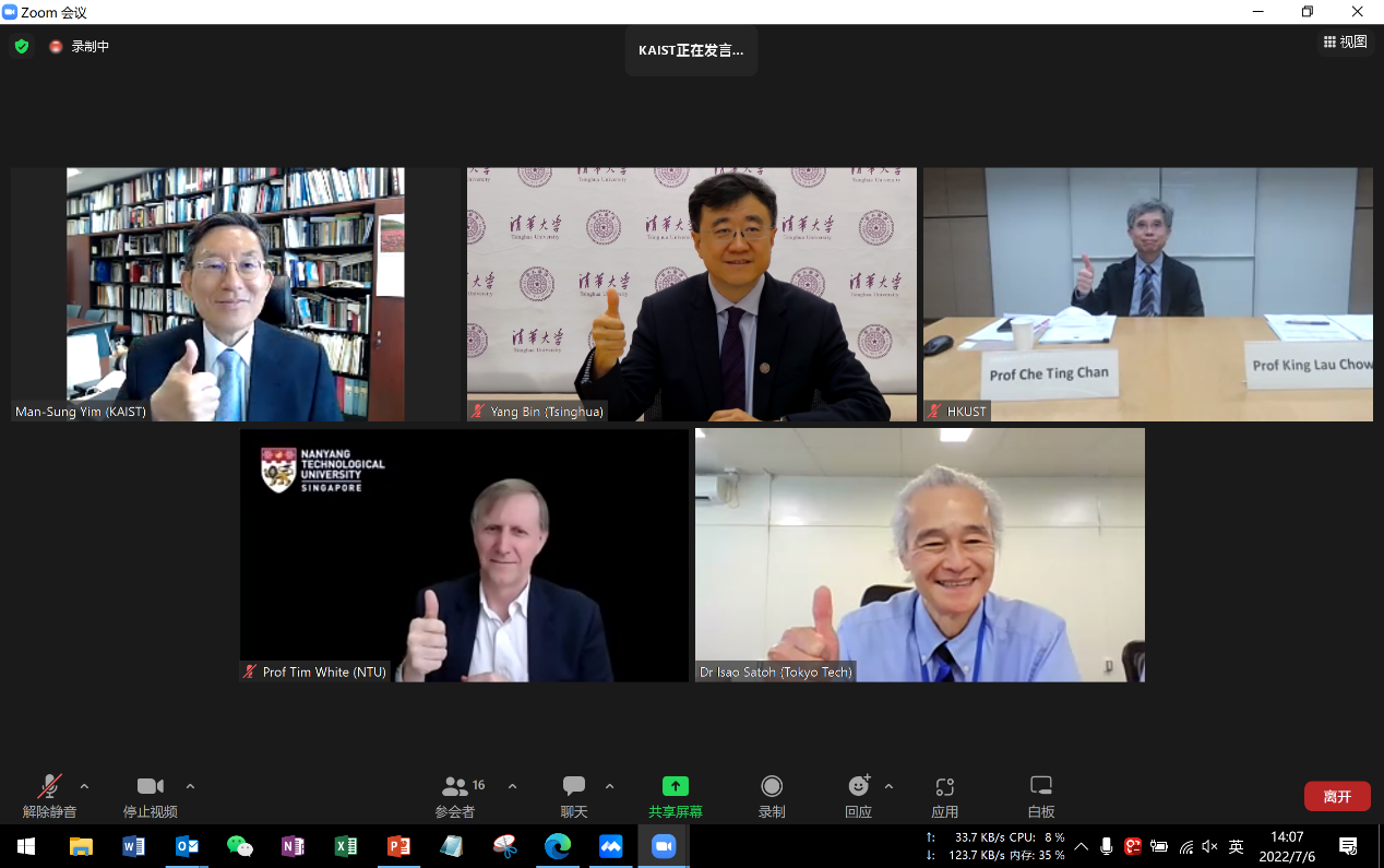 7月6日,各成员高校副校长及高级职员会议在线举行。清华大学副校长、教务长杨斌,香港科技大学协理副校长陈子亭,南洋理工大学副校长蒂姆·怀特,东京工业大学教务长、执行副校长佐藤勲,韩国科学技术院协理副校长任晚成以及协会成员高校职员代表等20余人出席。会议由本届协会主席、韩国科学技术院协理副校长任晚成主持。副校长们听取了协会秘书处报告过去一年的协会活动及成果,讨论了五所学校国际合作科研项目及教学创新规划,并就下一年度论坛举办、项目合作等相关事宜达成共识。
