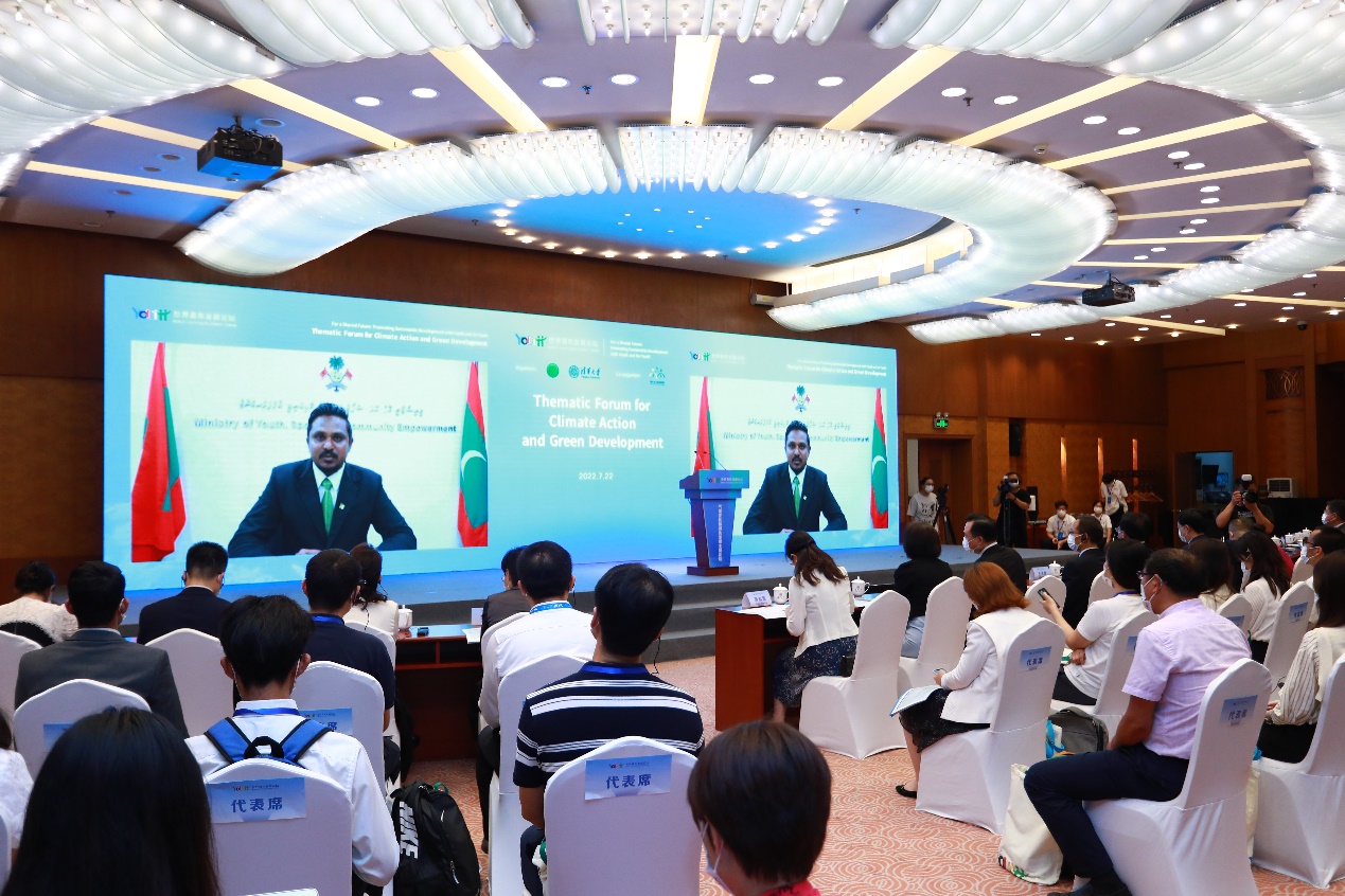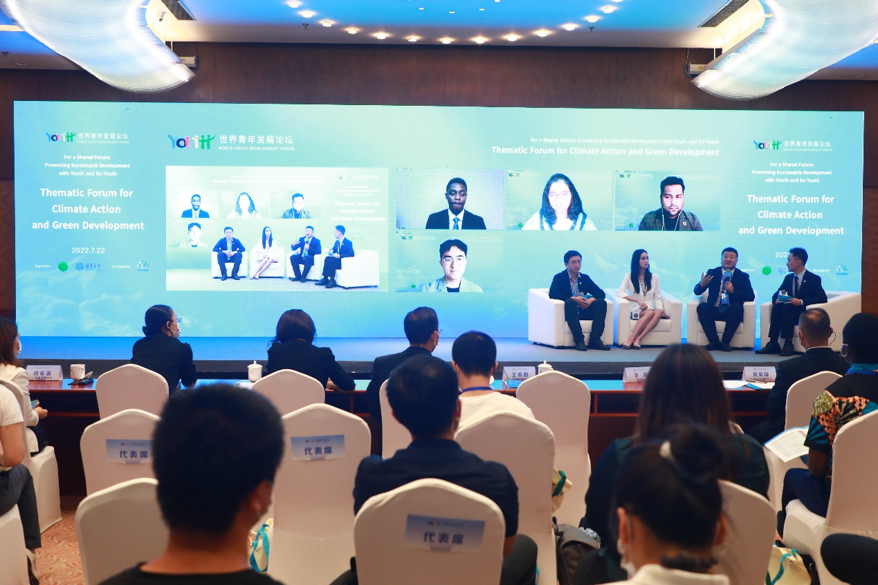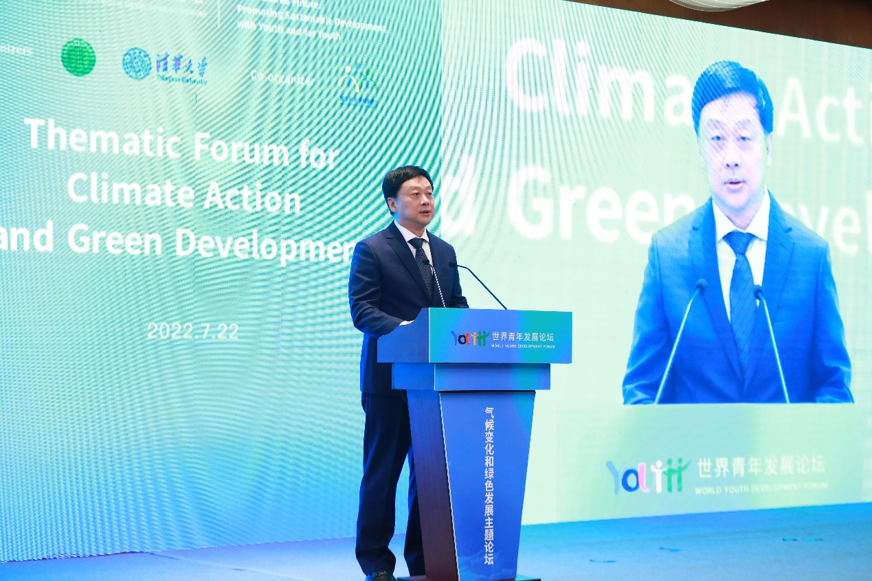 清华新闻网7月24日电(记者 周襄楠 通讯员张岱渭 摄影 常志东 崔文瑞)北京时间7月22日下午在清华大学主楼接待厅,首届世界青年发展论坛之气候变化和绿色发展主题论坛以线下线上结合的形式举办。作为首届世界青年发展论坛的四个主题论坛之一,该论坛由中华全国青年联合会与清华大学共同主办,青年外交高校联盟承办。论坛分为开幕致辞、主旨演讲、圆桌对话三个环节,来自世界各地的政府官员、国际组织负责人、专家学者和青年领袖,围绕气候变化和绿色发展的主题畅所欲言,分享观点,交流经验。