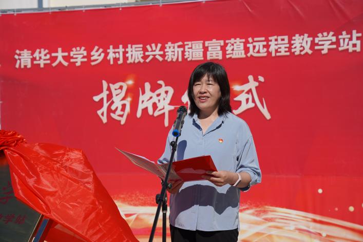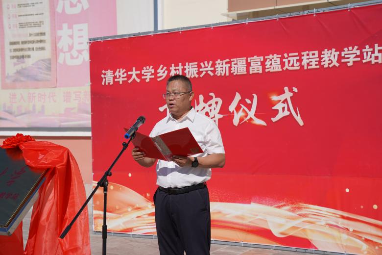 7月21日,清华大学乡村振兴新疆富蕴远程教学站揭牌仪式在西北边陲富蕴县新时代乡村干部实训基地隆重举行。清华大学继续教育学院党委副书记、纪委书记张文雪,富蕴县人大党组书记范立祥,县委常委、组织部长张明出席揭牌仪式。