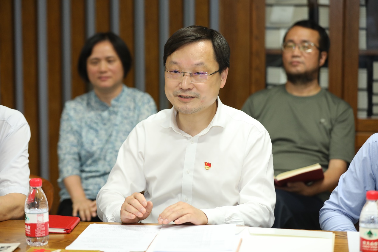 图书馆党委书记蒋耘中介绍了图书馆的文献资料藏品情况、相关资料的研究情况和成果。图书馆古籍特藏部副主任何玉结合现场摆放的珍贵原件,详细介绍了资料收集过程中遇到的困难和社会各界所给予的大力支持。