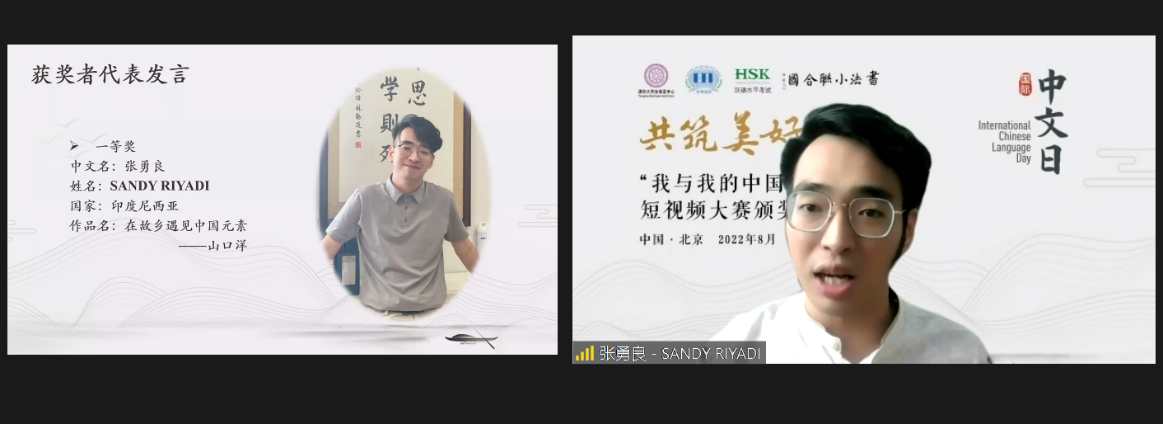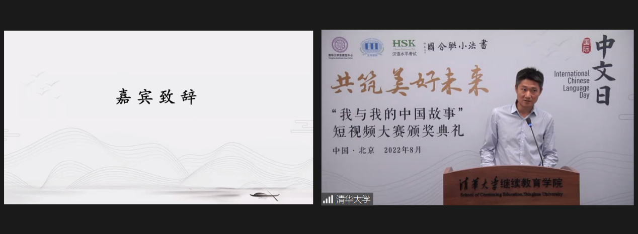 清华新闻网8月26日电 8月22日,由清华大学东南亚中心与汉考国际、书法小联合国共同主办的“我与我的中国故事”短视频大赛颁奖典礼通过线上线下融合方式举办,百余位参赛选手在线观看。此次大赛共收到来自全球89个国家的中文学习者的近千份视频作品,其中近400份通过初选的优秀作品已在汉考国际官方YouTube和Bilibili平台上进行展播,获得超25万人次浏览。