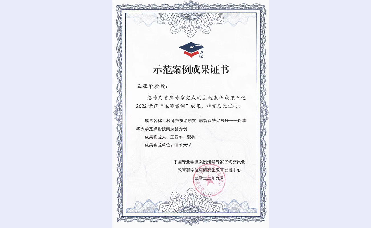 清华新闻网9月22日电 9月17日,首届中国案例建设国际研讨会(2022)举行,并首次发布主题案例典型示范成果。会议在教育部社会科学司、教育部学位管理与研究生教育司的指导下,由教育部学位与研究生教育发展中心和清华大学公共管理学院联合主办。公共管理学院王亚华教授领衔团队主题案例中的《教育帮扶助脱贫 志智双扶促振兴——以清华大学定点帮扶南涧县为例》(以下简称“南涧案例”)入选2022示范“主题案例”成果,该案例生动展现了伟大的中国脱贫攻坚战过程中,教育部直属高校对口帮扶地方脱贫的典型做法和主要经验。