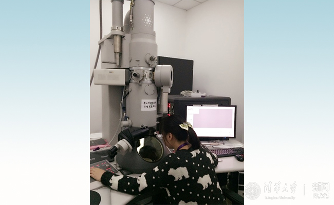 万蕊雪在使用电镜进行观察。
