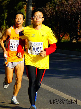 明朗的笑容,有些憨厚的神情,这就是李晨曦留给记者的第一印象。在10月20日举行的2013北京国际马拉松赛中,这位来自清华大学计算机系的博士一年级的学生,以2小时57分53秒的成绩创造了本届赛事中清华选手的最好成绩。作为马拉松赛场上的一匹“黑马”,他为自己,也为清华夺得了荣誉。青春不息,奋斗不止,李晨曦矫健的身姿背后,是那一颗为体育梦想而跳动的心。
