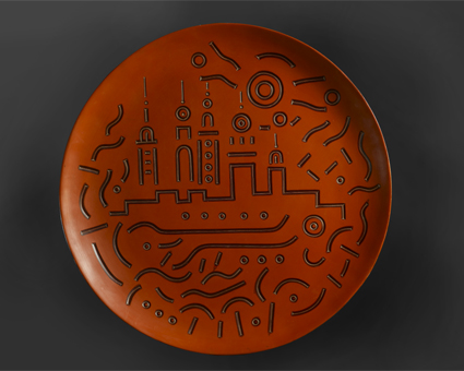 “童年时候我就十分喜欢欣赏红药水在太阳下金光闪亮的感觉,常用它来画红旗和太阳的红色光芒。我还清晰地记得,小学时看到裱画案子上所髹涂的朱漆,令我兴奋不已。”也许就是这份对红色的钟爱让周剑石走上了学习和创作漆艺的生涯。