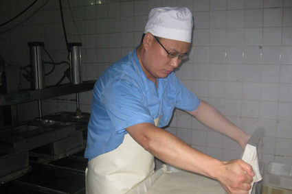 2005年8月,梁田从扬州大学营养教育学专业毕业。“当得知清华后勤招聘时便一心想来,既然不能来清华读书,来这里工作也好。”梁田顺利通过招聘环节,成为清华饮食服务中心豆制品加工车间一名普通的操作工人。来清华的第一天下午,他便来到车间报到,第一眼就被锃光瓦亮的机器“震慑”住了。他激动地给去星级酒店工作的大学同学打电话:“你们做菜还得摘洗切烹,我们这儿都是自动化!”