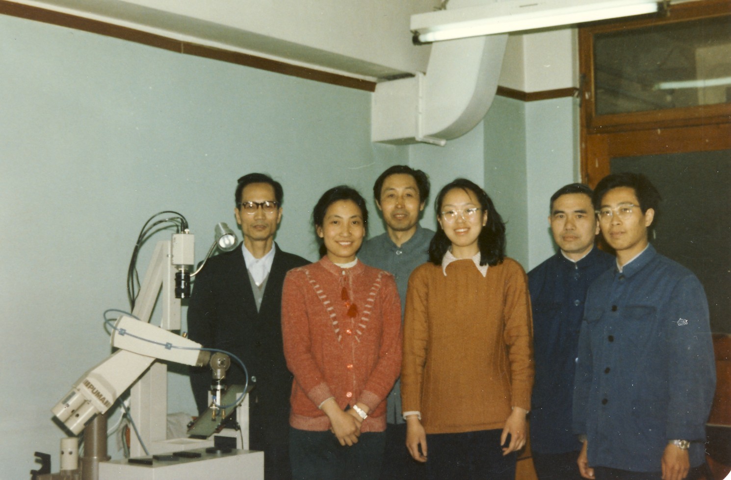 参与清华大学智能机器人实验室建设的科研人员合影。左一为张钹。(1985年)
