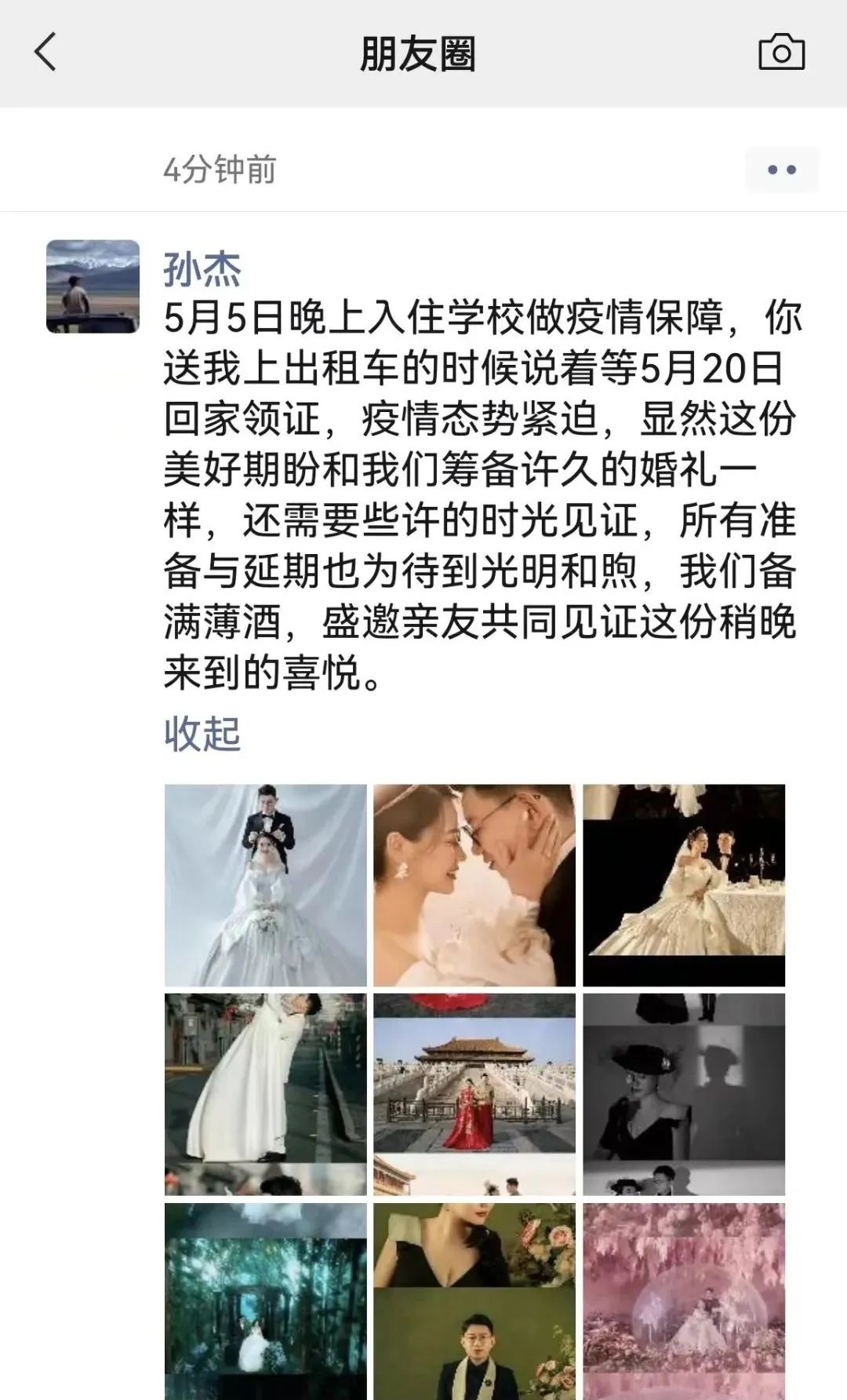 孙杰与未婚妻的故事被网友用“神仙爱情”来形容。“舍小家为大家”,看到教职工们的辛勤付出,在校生和家长们表示十分感谢。大家纷纷为孙杰和未婚妻送去祝福,并坚信:众志成城,战疫必胜。“所有准备与延期,也为待到光明和煦。”祝福百年好合,一起为抗疫加油!