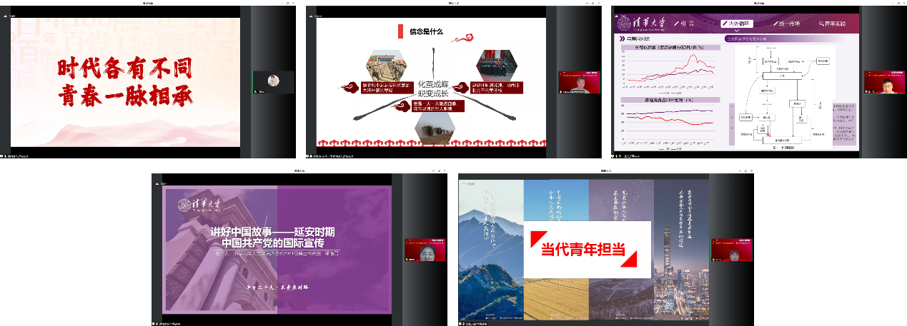 在理论宣讲环节,“立言计划”学员、公共管理学院2022级博士生兰雨潇,“立言计划”学员、水利水电工程系2022级硕士生彭颖政,“立言计划”学员、五道口金融学院2022级博士生陶一凡,“立言计划”学员、人文学院2021级博士生潘怡君和武汉大学博士生宣讲团讲师、电气与自动化学院2022级博士生张长文分别进行了宣讲。兰雨潇以“怀抱梦想又脚踏实地,敢想敢为又善作善成——从党领导下的百年青年运动史看新时代中国青年的历史使命”为题,回顾了党领导下的百年青年运动史,梳理了革命一代、建国一代、改革一代和强国一代青年人的使命任务和责任担当。彭颖政以“坚定信念攀高峰 强军浪潮拔头筹”为题,回顾了《中国军魂》歌曲背后的故事,结合自身经历阐述了强军路上每名官兵所经历的化茧成蝶、蜕变成长的历程,号召青年学生要在时代浪潮中“勇立潮头”,逐梦青春。陶一凡以“构建新发展格局——从中外经济对比的视角来看”为题,带领同学们从中国与世界主要国家的经济对比角度分析,理解中国经济增长的奇迹,厘清新发展格局的时代背景与逻辑内涵,号召同学们在初心使命的感召下,以实践建设社会主义现代化国家。潘怡君以“讲好中国故事——延安时期中国共产党的国际宣传”为题,回顾了延安时期中国共产党的国际宣传,倡导青年增强中华文明传播力、影响力,坚守中华文化立场,讲好中国故事、传播中国声音,展现可信、可爱、可敬的中国形象,推动中华文化更好走向世界。张长文以“胸怀报国志,奋进新征程”为题,从电力系统十年发展成就出发,结合同学身边榜样的生动故事,启发同学们思考新时代青年如何在新时代强国路上砥砺奋进,助力打赢关键核心技术攻坚战。