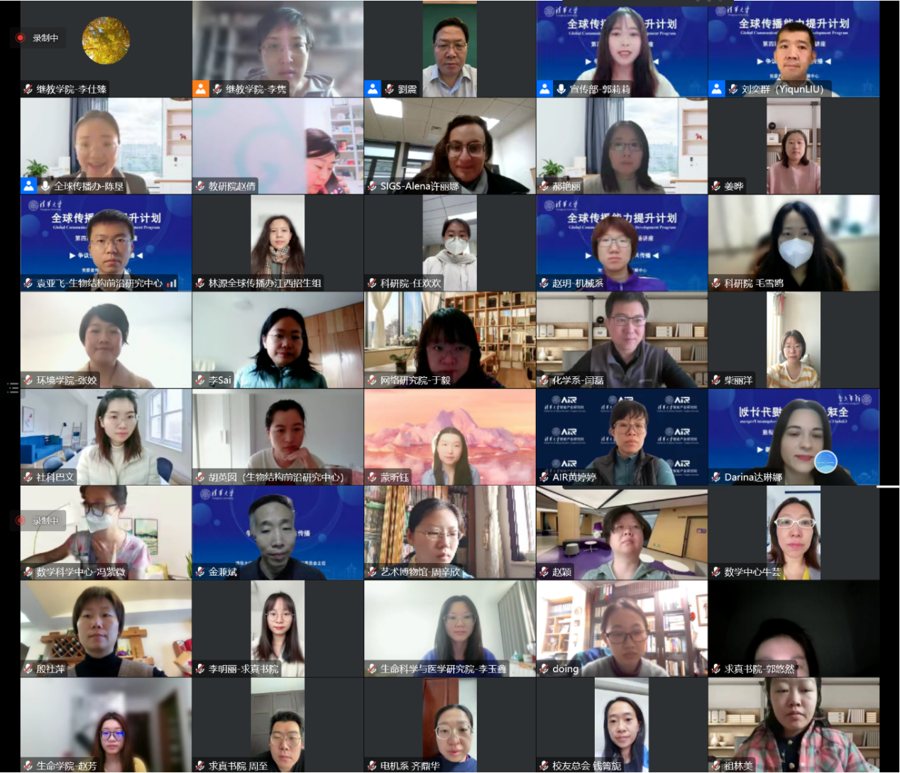 清华职员“全球传播能力提升计划”由党委宣传部、职工发展中心主办,继续教育学院承办,并纳入学校职员整体培训计划。该计划于2019年11月启动,前三期培训计划累计举办专题讲座、实地参访、实战工作坊、工作研讨等活动30余场,共计完成来自70余个单位共计175名全球传播工作职员的系统化培训,各类讲座覆盖受众4000余人次。本期培训计划共有来自36个院系单位的53名学员入选,参训学员将围绕“融媒体时代下的学术国际传播”这一主题,立足做好学校全球传播工作,系统学习全媒体背景下科技领域新闻报道及学术传播的新理念新方法,探索生动讲述清华科研创新故事、弘扬科学家精神的规律路径,全面推动科技新闻报道和学术传播工作,塑造清华服务国家、贡献世界的良好形象,持续提升学校学术声誉和全球影响力。