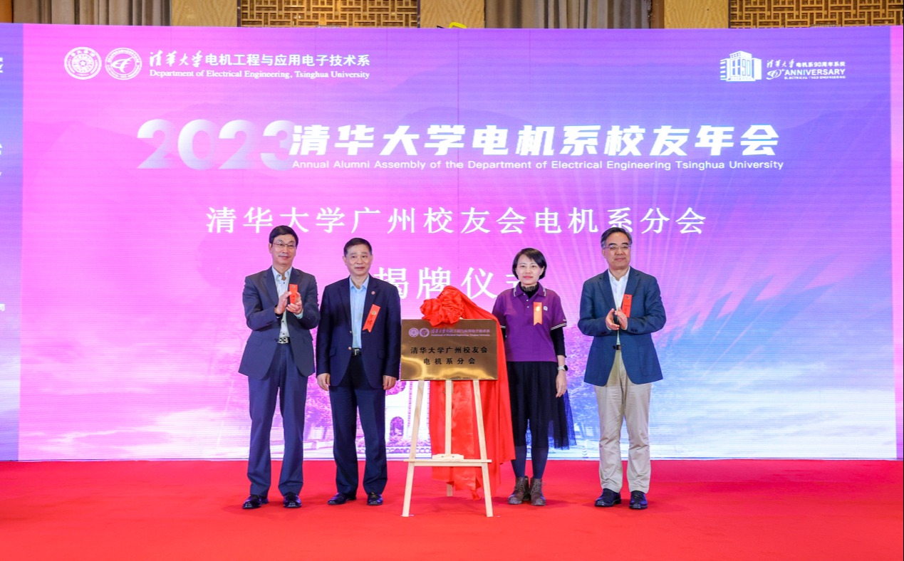 在与会嘉宾与电机系校友的共同见证下,清华大学广州校友会电机系分会正式成立,并举行揭牌仪式。