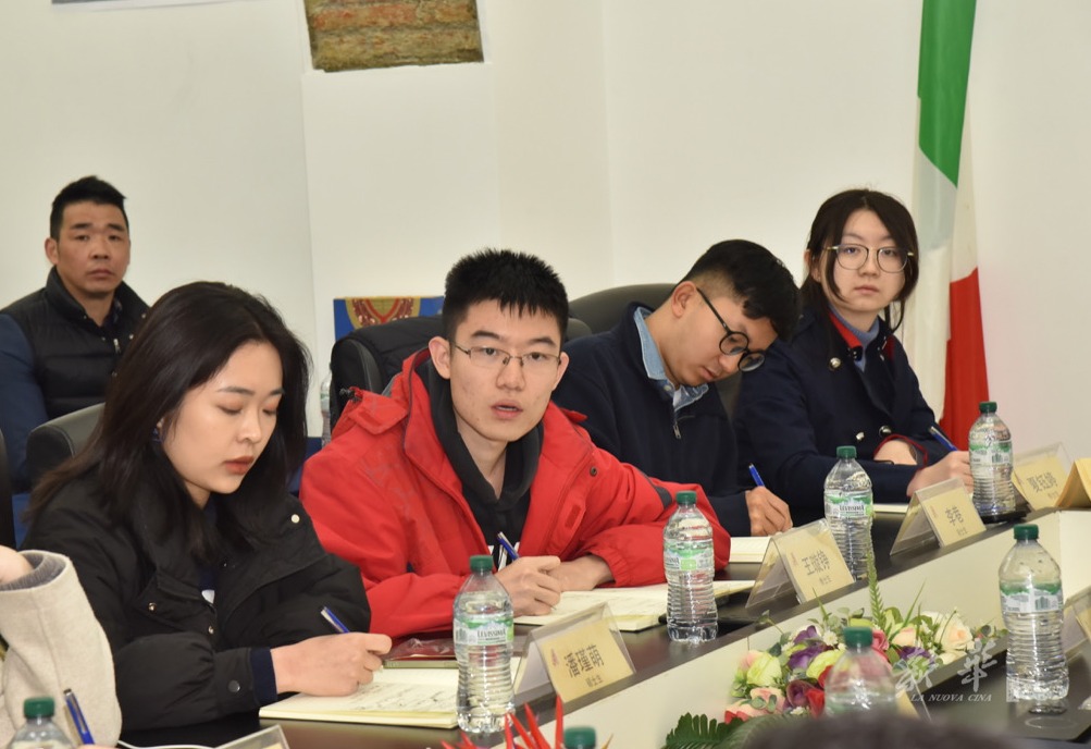 当天下午,支队成员与意大利中国文化交流与发展中心主任、意中文化旅游促进会主席张长晓在意中文化交流与发展中心进行座谈,分享了来到意大利后的见闻与感悟,并与张长晓就中国的海外形象输出、中意文化异同等主题开展深入讨论。“祖国的繁荣为中意双方的广泛交流提供了丰厚土壤,为多层次的文化互动埋下了种子。一个直观的体会是,当我们走在意大利街头,许多意大利人在知道我们来自中国后都会亲切地用中文说一句‘你好’,这让我们不仅感受到身为中国人的自豪,也认识到,身为青年一代的我们应当主动承担起对外输出中国形象的重任。”清华大学材料学院博士生夏钰婷说道。