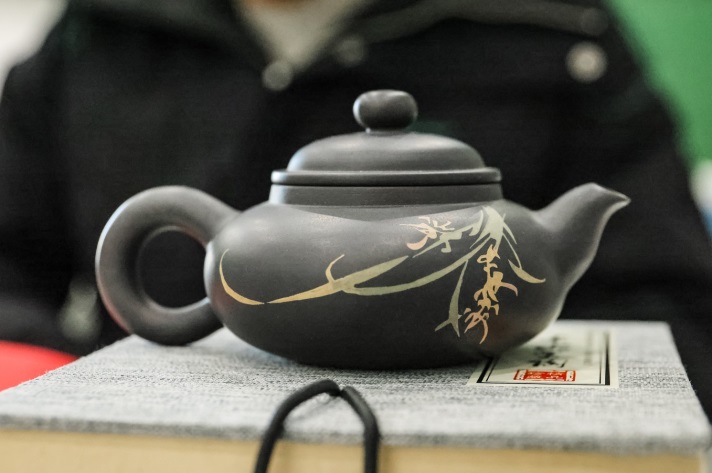 美术学院王建中教授与建水紫陶烧制技艺非遗传承人黄倩的多件紫陶作品在非遗展演互动区展出。他们还现场讲解了建水紫陶制作工艺与文化。