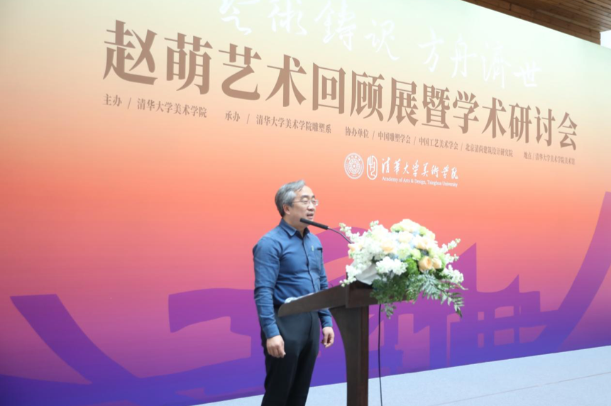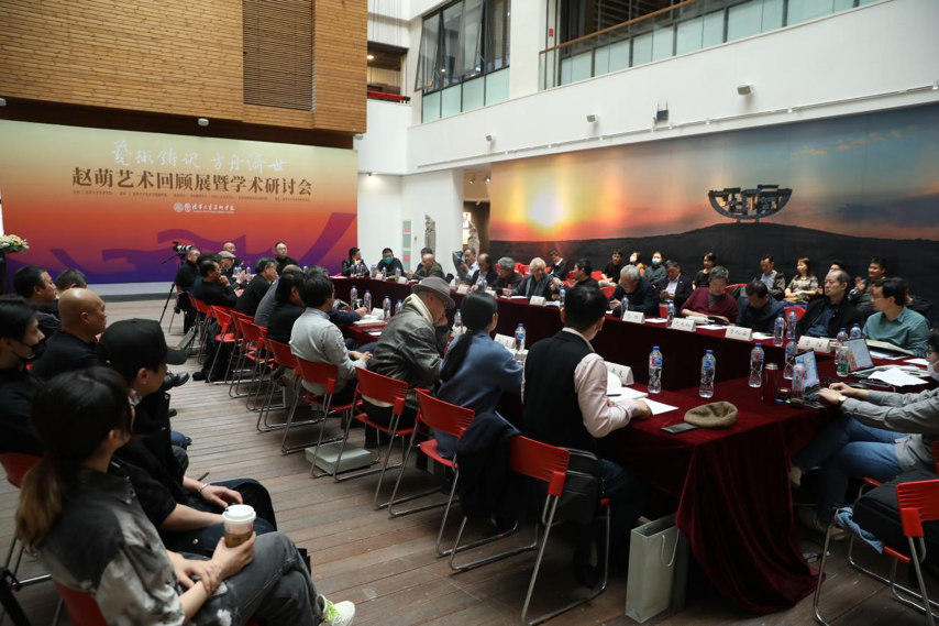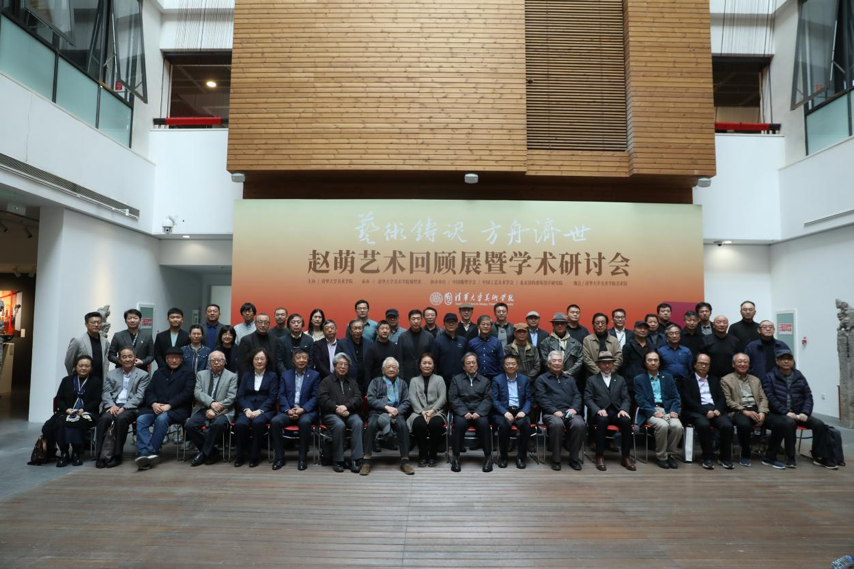 开幕式后举办了专题学术研讨会,40余位知名美术家、美术评论家参加,美术学院雕塑系教授陈辉主持。中央美术学院原党委书记盛杨,中国雕塑学会名誉会长、中央美术学院教授曹春生等分别发言。嘉宾们表示,赵萌是清华大学美术学院成长发展的建设者和见证人,曾担任美术学院雕塑系主任、副院长、院党委书记等职务,是美术学院雕塑系的主要开拓者之一,为美术学院的发展和艺术教育事业尽心竭力作出卓越贡献,深受师生信任和爱戴。赵萌也是著名的雕塑家、艺术理论家和美术教育家,在艺术创作、理论研究和教育教学等方面成果丰硕。他还曾多次承担国家重大任务,将个人的理想信念与国家民族和人民群众的文化需求紧密相连,在服务国家重大项目中作出杰出贡献。