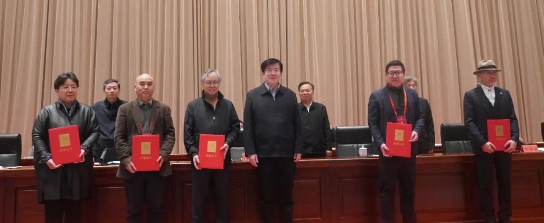 活动现场为建党100周年重大主题雕塑工程创作单位和主创人员颁发荣誉证书,并举行“中国美术家协会志愿服务团”授旗仪式。