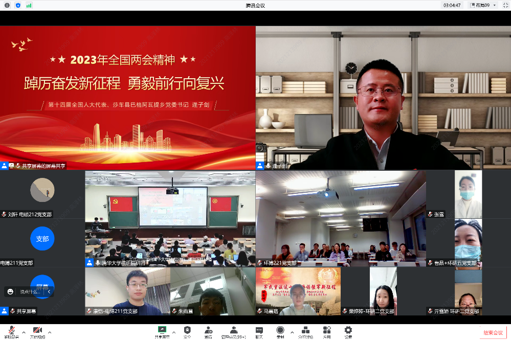 清华新闻网4月11日电 3月31日晚,与人大代表共话全国两会精神党团联席学习活动暨清华大学核能与新能源技术研究院(以下简称“核研院”)研究生推优入党大会在第二教学楼401教室召开。核研院2022级全体研究生新生党团支部成员现场参会,环境学院、电机系、核研院的部分党团集体百余人线上参会。