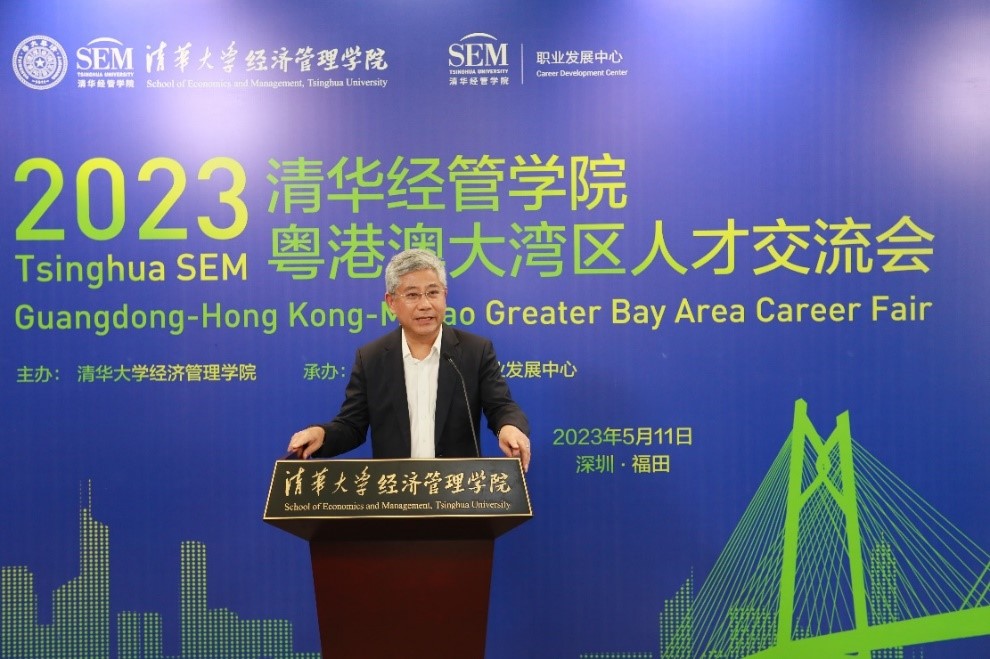 清华新闻网5月15日电 5月11日,2023清华经管学院粤港澳大湾区人才交流会(简称“人才交流会”)在深圳举办。深圳福田区政府党组成员、副区长朱江,清华大学深圳国际研究生院执行院长高虹,清华大学经济管理学院院长白重恩出席活动并致辞。