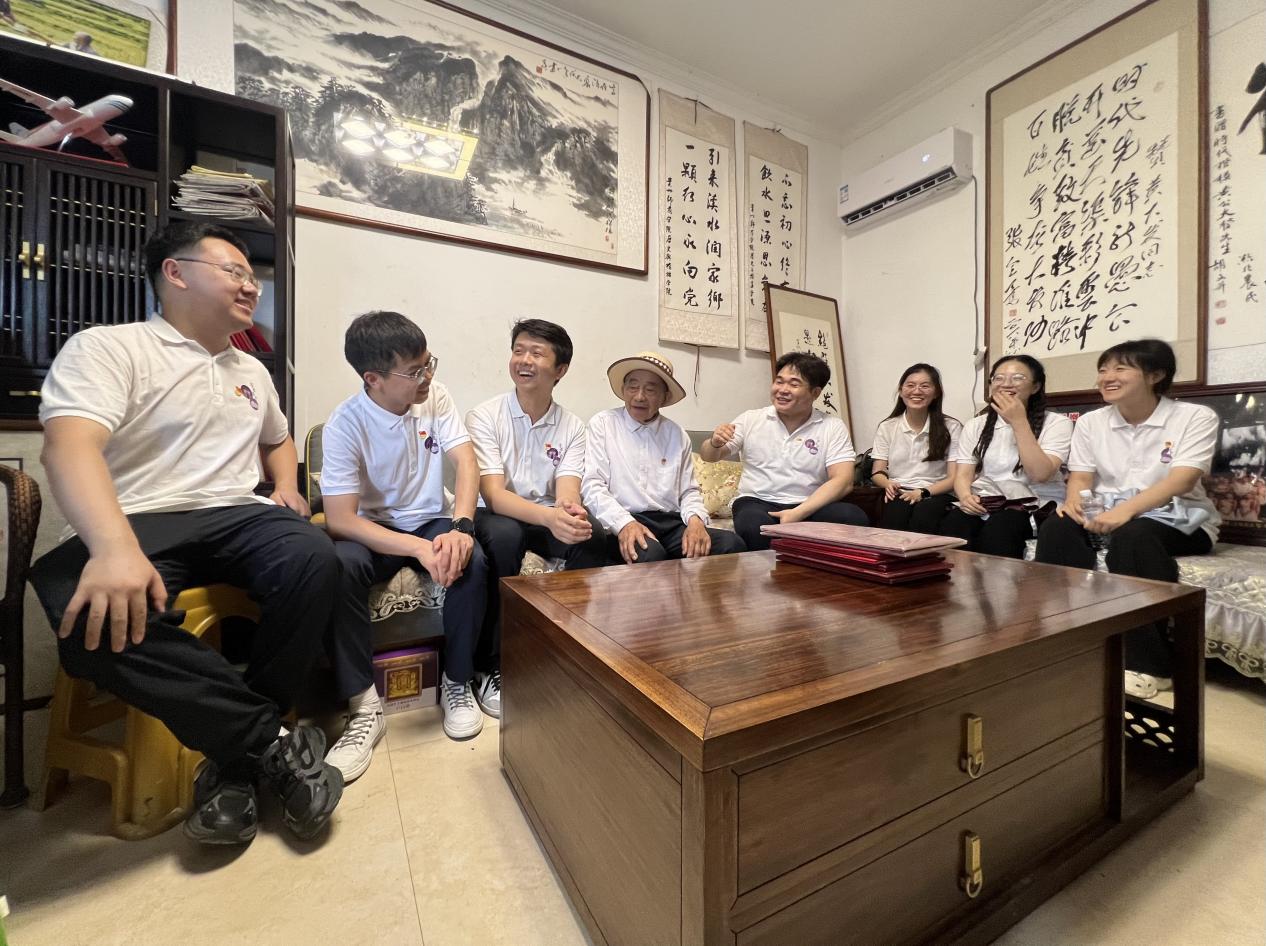 化屋村的案例无独有偶,支队走进了同样曾是远近闻名的贫困缺水村——遵义市播州区平正仡佬族乡团结村,这里有着黄大发老支书的奋斗故事。黄大发老支书在任期间,带领村民几十年如一日开渠引水,使草王坝彻底告别了“滴水贵如油”的历史,习近平总书记曾向黄大发老支书颁授“七一勋章”并与他亲切交流。实践团成员调研过程中,与黄大发老支书共话农村产业发展,在交流过程中,实践团成员无不为“当代愚公”一心为民、艰苦奋斗的精神所感动激励。大家纷纷表示将牢记老支书嘱托,继续“学好本领,为国奉献”。