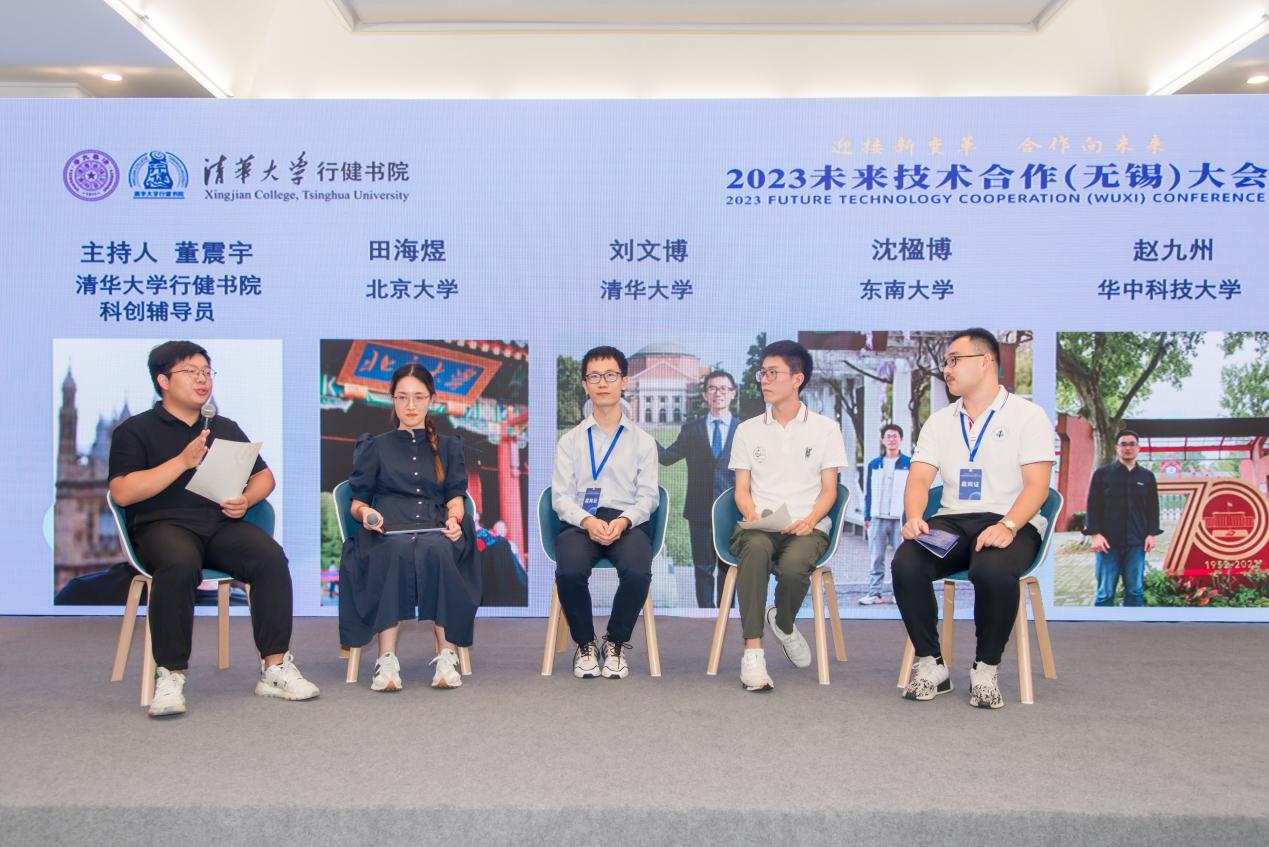 沙龙最后,来自北京大学、清华大学、东南大学、华中科技大学四所高校未来技术学院学生代表田海煜、刘文博、沈楹博与赵九州以“青年创未来”为主题展开圆桌对话。