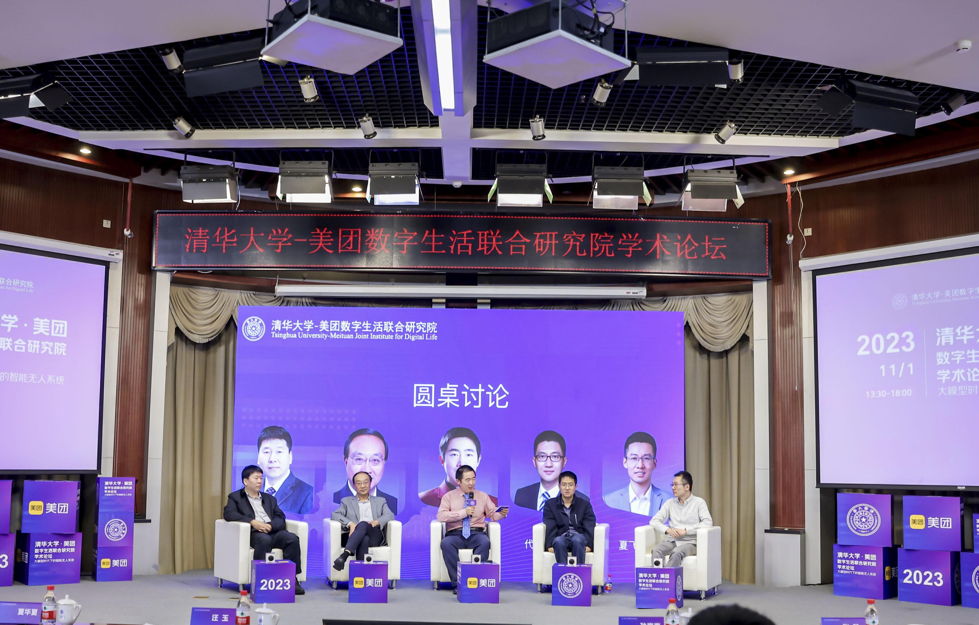 圆桌讨论环节,研究院院长、自动化系主任张涛,张毅、贾庆山、夏飞、清华大学电子工程系副教授代季峰围绕大模型、智能无人系统与未来发展进行探讨。