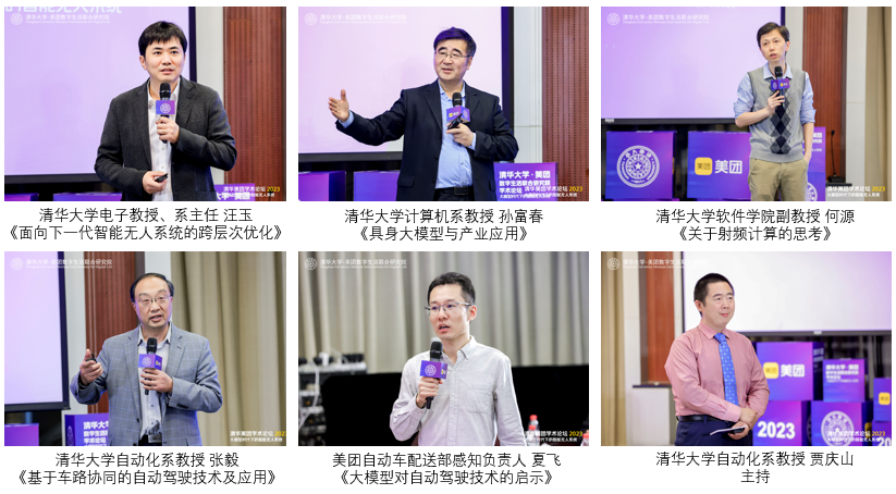 研究院管委会副主任、清华大学电子工程系主任汪玉,清华大学计算机系教授孙富春、软件学院副教授何源、自动化系教授张毅,美团自动车配送部感知负责人夏飞依次作题为“面向下一代智能无人系统的跨层次优化”“具身大模型与产业应用”“关于射频计算的思考”“基于车路协同的自动驾驶技术及应用”“大模型对自动驾驶技术的启示”的报告。