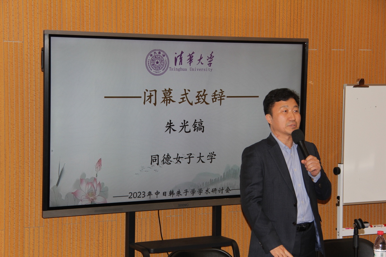 11月5日中午,本次研讨会在B202会议室举行闭幕式,东京大学东亚艺文书院副教授田中有纪、同德女子大学副教授朱光镐和清华大学哲学系副教授赵金刚致闭幕辞。