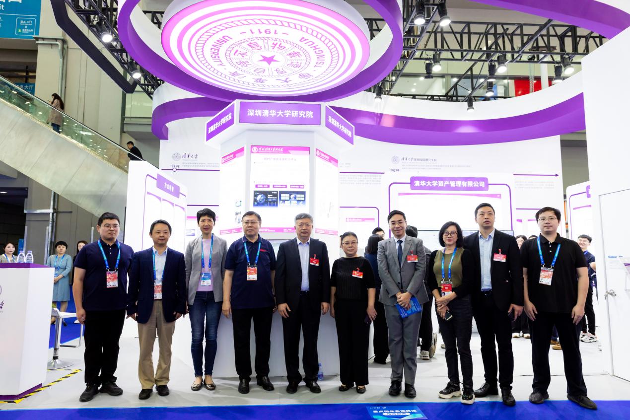 开幕式当天上午,深圳国际研究生院副院长马岚,深圳清华大学研究院院长嵇世山、副院长昝成,深圳市力合科创股份有限公司董事长贺臻参观了清华大学展区。