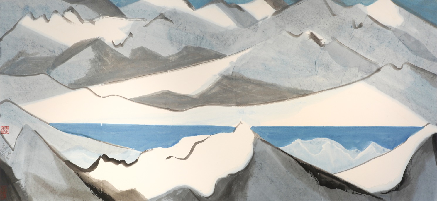 昆仑山上的阴阳湖 纸本水墨设色 180cm×83.5cm 2023