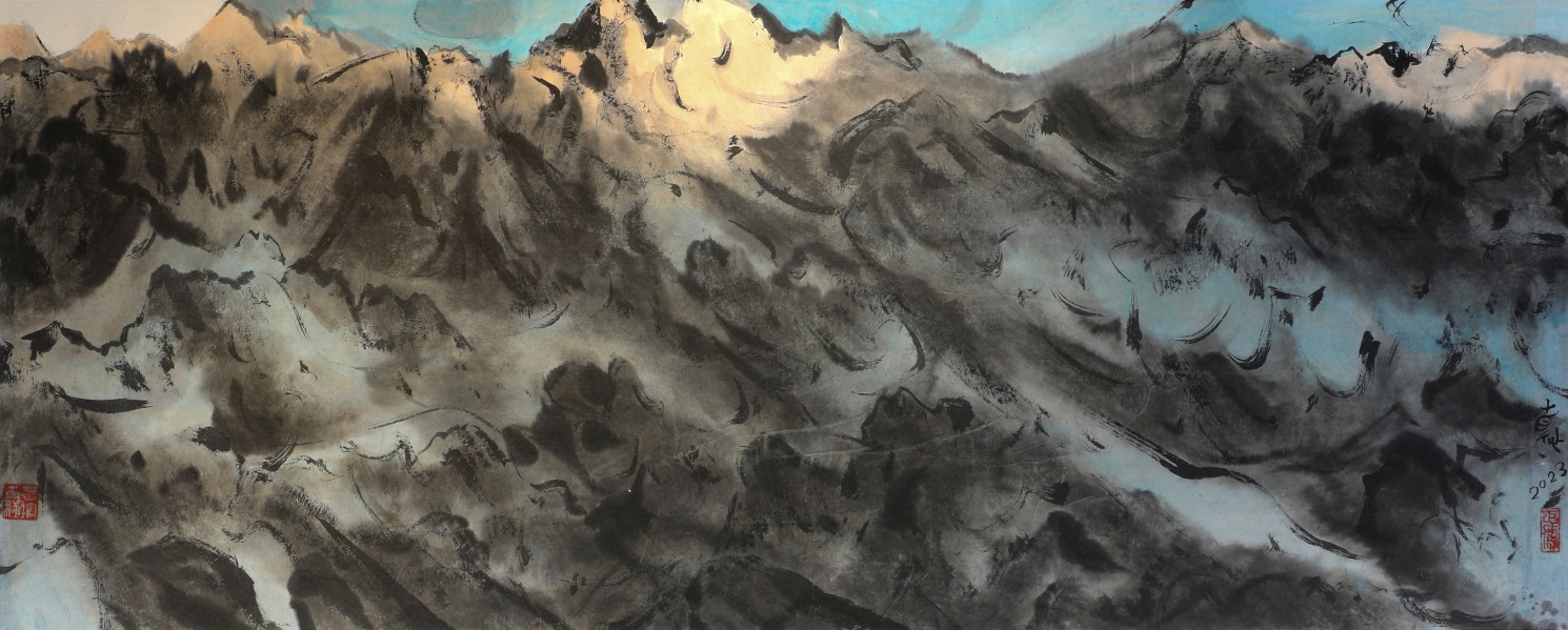 大青山 纸本水墨设色 80cm×200cm 2023