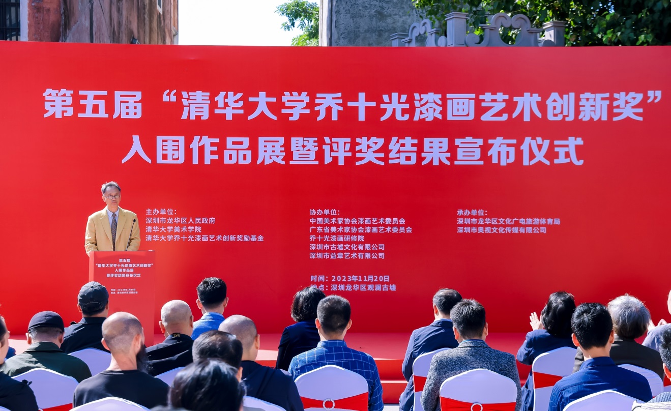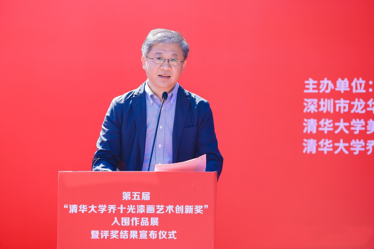 本次活动由深圳市龙华区人民政府、清华大学美术学院、清华大学乔十光漆画艺术创新奖励基金主办,深圳市龙华区文化广电旅游体育局等单位承办。龙华区委常委、宣传部部长黄立敏,深圳市龙华区文化广电旅游体育局党组书记、局长赵广锐,清华大学美术学院院长、清华大学乔十光漆画艺术创新奖励基金管委会主任马赛,福建省美术家协会副主席、中国美术家协会漆画艺术委员会主任陈金华等领导、专家和嘉宾出席活动。活动由教育部首届全国高校美育教学指导委员会委员、清华美院教授、乔十光漆画艺术奖管委会副主任兼秘书长卢新华主持。