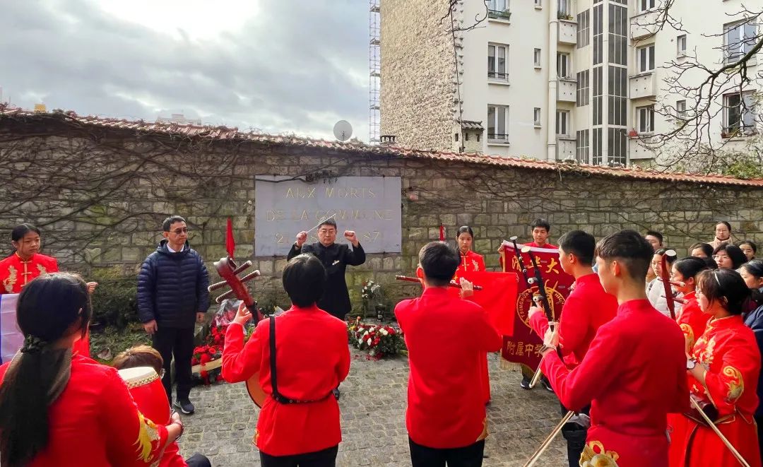 春节期间,清华附中金帆民乐团远赴法国,应邀参加“蒙达尔纪法中校园艺术节”,该艺术节活动旨在庆祝中法建交60周年,促进中法人民特别是青少年之间的文化艺术交流与合作。为纪念老一辈无产阶级革命家的丰功伟绩,激发青年学生的责任担当和奋斗精神,金帆民乐团于2月10日、11日分别在蒙达尔纪“邓小平广场”和巴黎公社社员墙前开展了两场音乐思政课程。