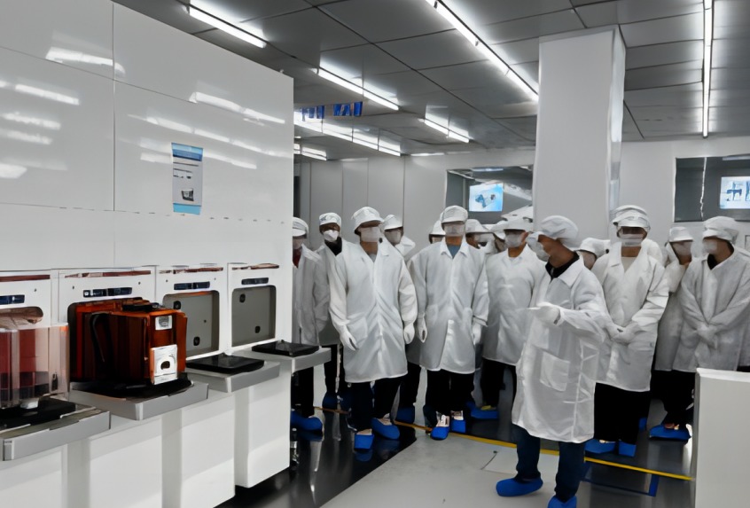 “材迹探芯”支队成员参观中微生产车间