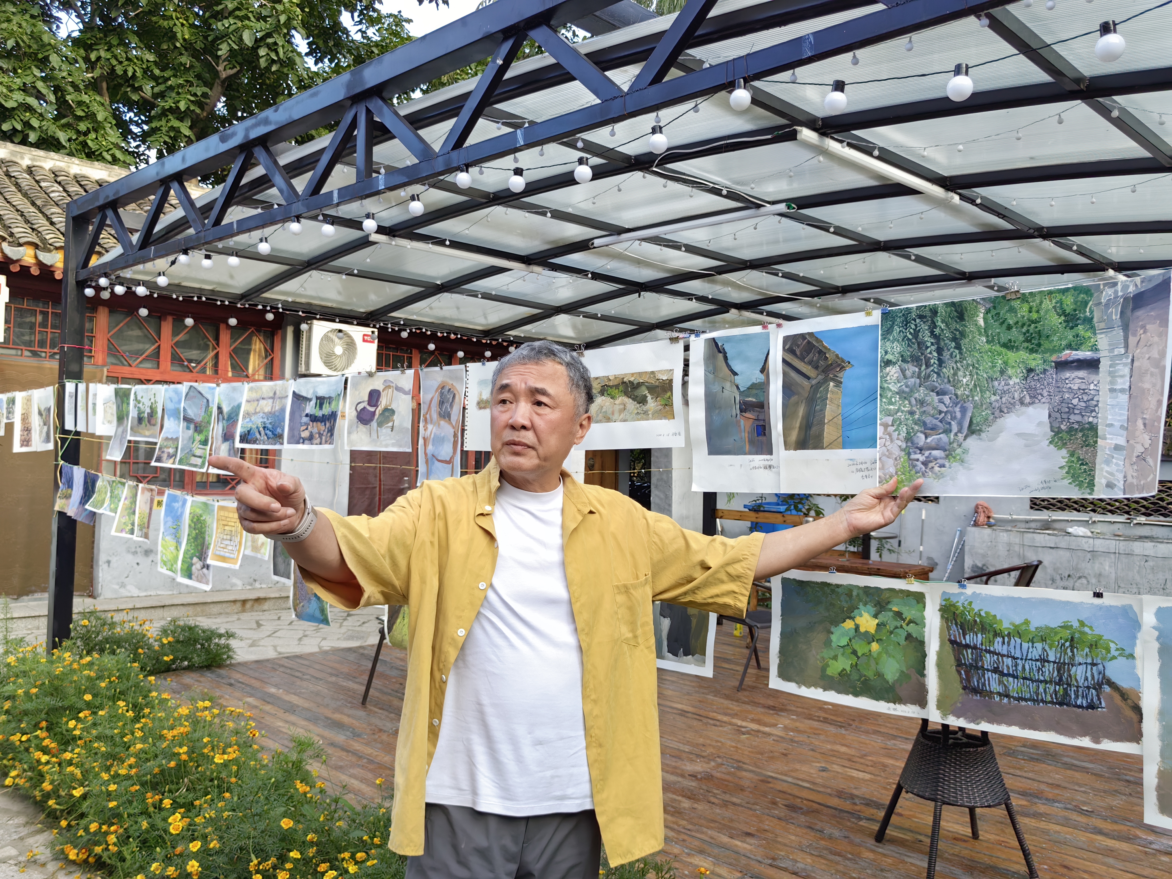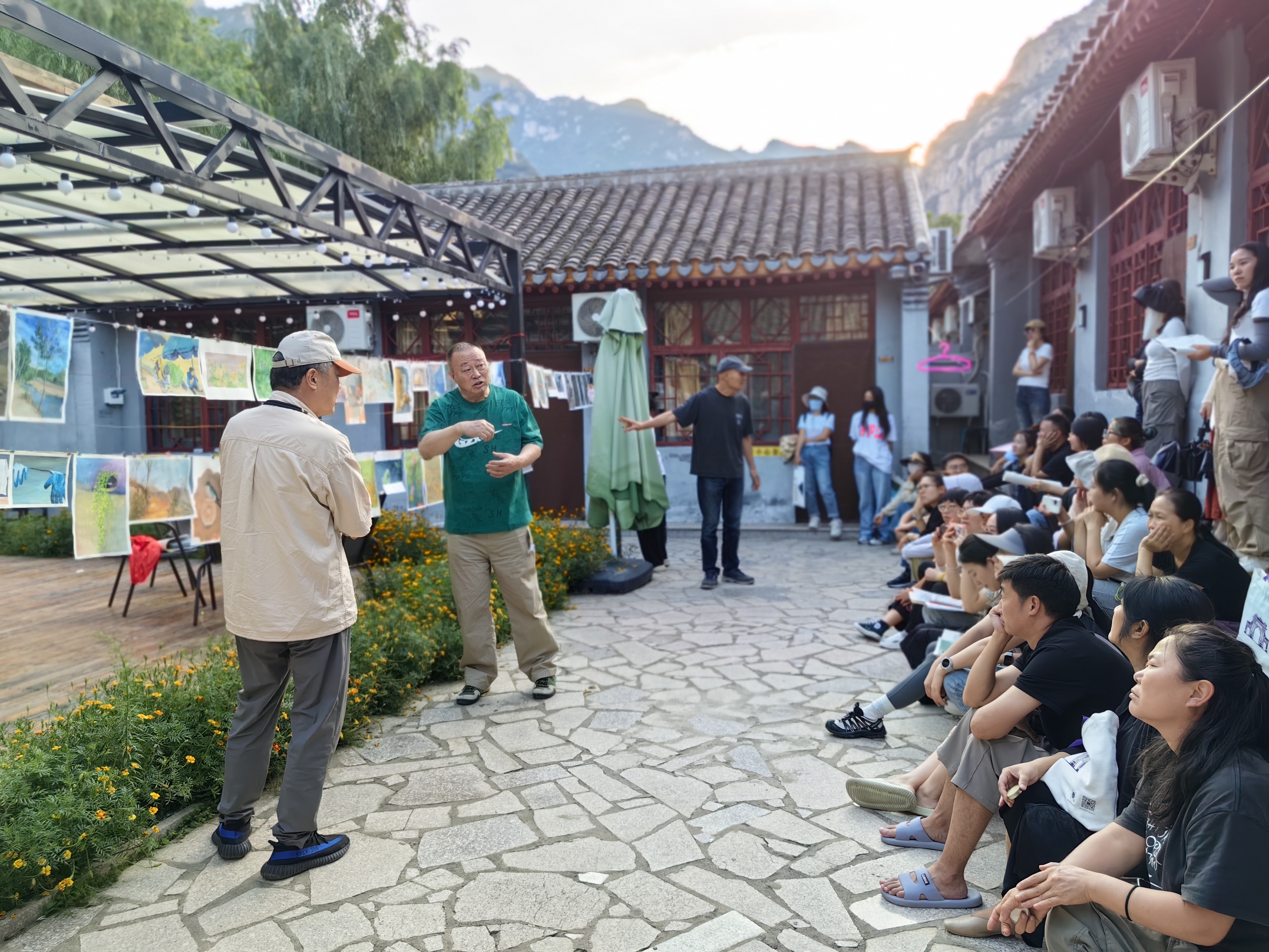 写生基地的写生创作实践和个性化讲评指导是此次培训的一大亮点。乡村教师们满怀学习热情积极投身于大量的绘画创作中,勇于尝试多元化的绘画风格。他们不仅重新构建了对“绘画”与“色彩”的深刻认知,还通过不断的探索与实践,提升了自身的美术创作能力。授课教师作业讲评中采取集中讲评和个性化指导,鼓励相互交流讨论,让教师们在创作实践中理解所学的知识和理念,同时也促进了教师间的互学互鉴。