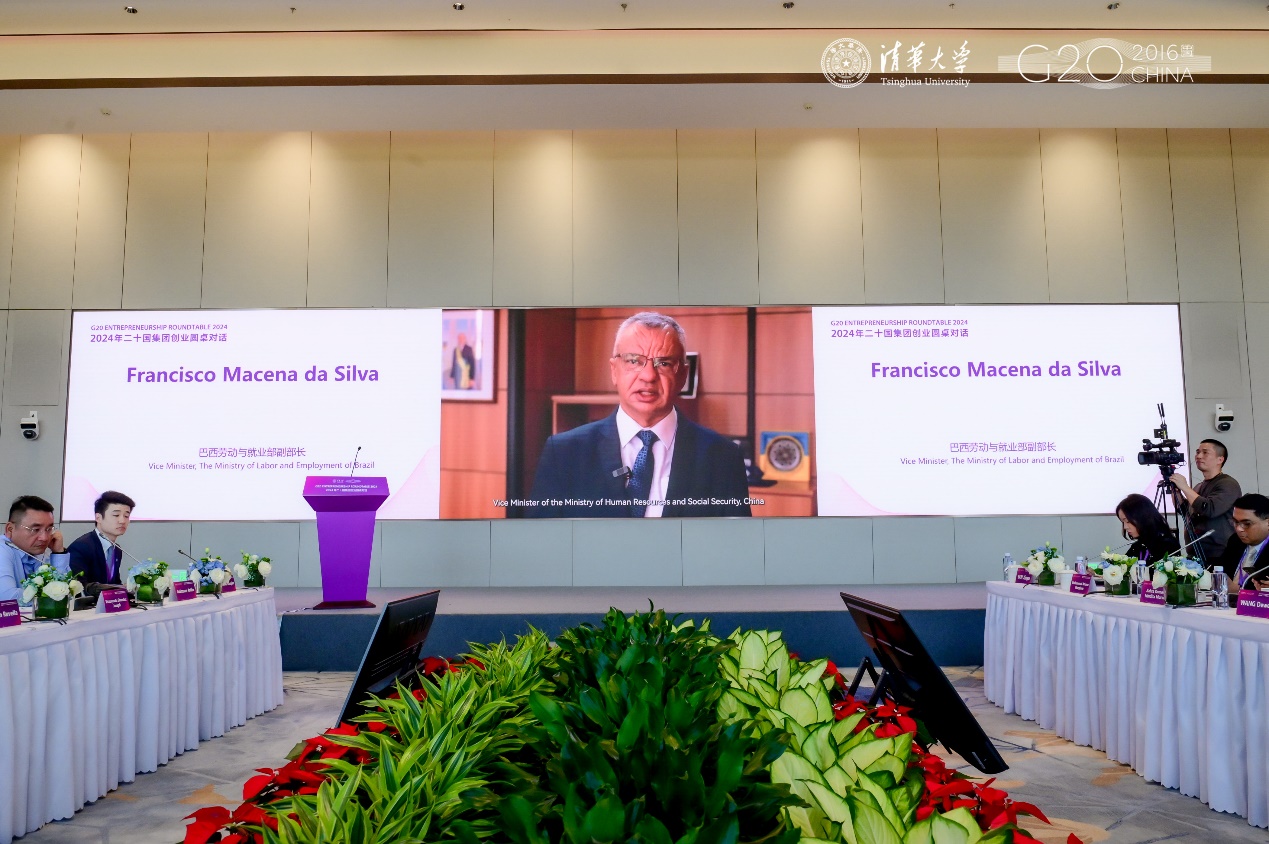 清华新闻网10月23日电 10月15日至16日,由清华大学二十国集团(G20)创业研究中心与巴西劳动与就业部联合主办的2024年二十国集团创业圆桌对话在清华大学经管学院举行。本届圆桌对话主题为“推动数字与可持续创业 带动高质量充分就业”。人力资源和社会保障部副部长俞家栋、巴西劳动与就业部副部长弗朗西斯科·马塞纳·达席尔瓦(Francisco Macena da Silva)、人力资源和社会保障部国际司副司长(主持工作)吕玉林、清华大学校务委员会副主任王岩和国际劳工组织北京局副局长戴晓初通过线上线下方式出席活动。