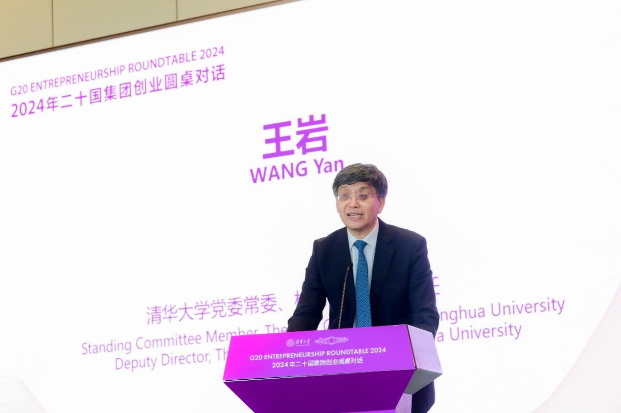 王岩介绍了清华大学在人工智能和绿色教育方面的创新探索。他表示,本次二十国集团创业圆桌对话的主题既重要也紧迫,一方面,数字创业和可持续创业紧扣全球创业就业的重要问题;另一方面,把数字和可持续创业与实现高质量就业结合起来,探索就业政策和就业服务面临的挑战和需要采取的新举措,对推动G20的创业就业工作具有积极作用。