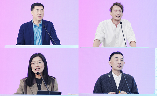 学术研讨部分由主旨报告和圆桌讨论两部分组成。清华大学美术学院副院长杨冬江,意大利米兰新美术学院院长圭多·塔托尼(Guido Tattoni),耐克服配事业部、北亚区供应商管理总经理张晓英,清华大学美术学院染织与服装艺术设计系主任李迎军分别作题为“人工智能时代下的时尚与设计”“教育的可持续发展”“供应链的可持续发展与数字化智造”“文化赋能·相得益彰”的主旨报告。