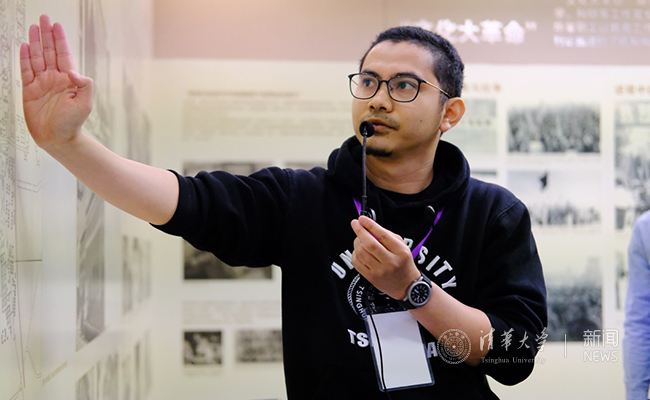 为了讲好校史,国际学生志愿者们在前期做了大量的材料阅读和实地演练。来自土木与水利学院2018级尼泊尔籍硕士硕士生普拉丹 (Suyog Pradhan)翻阅了近十万字的讲解资料,进行了充分的前期准备。在讲解现场,普拉丹为大家详细介绍了解放后和建国初期清华大学的校园情况,将闻一多和朱自清等清华人的风骨故事娓娓道来,展现了清华学子“天下兴亡、匹夫有责”的家国情怀。